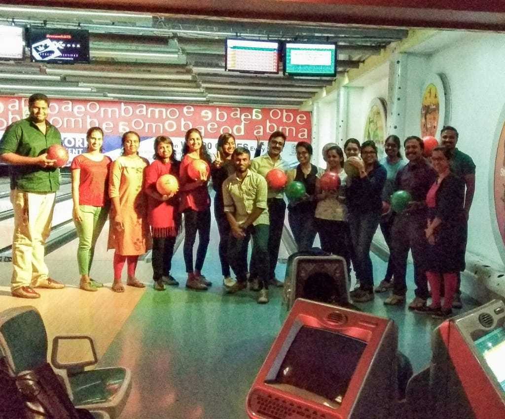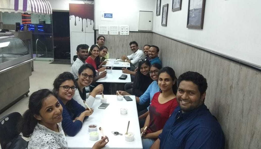 The top 2 players were unarguably Chethan and Jignesh sir, who aimed either strikes ( literally echoing through the arcade as the pins were struck) or spares and settled for nothing less. They amazed us with their bowling angles and techniques, managing to score points over a whopping 100! For a good two hours, each of us just indulged wholly in a power-packed evening, in a way reliving the days of zero worry and responsibilities. The fact that we all had work the next day seemed to have completely escaped all our minds. Imagine our surprise when we realized that it was a tie between both teams! In the end, it came down to taking a vote if we wanted another game or wind up with ice cream. Quite shockingly most including the foodies of the group opted for another game, but everyone eventually liked the idea of ice cream better, to cool off. It didn’t take much thought to decide that Corner house was the best option.