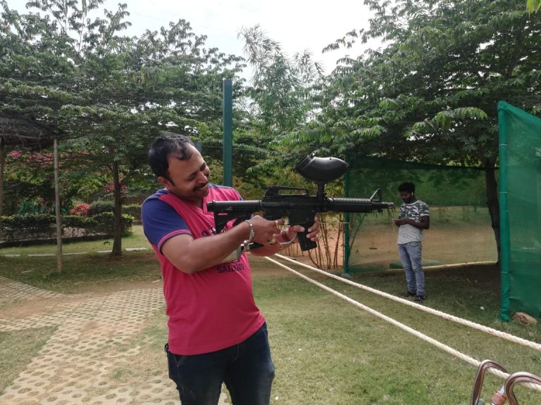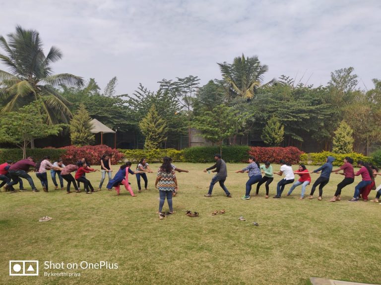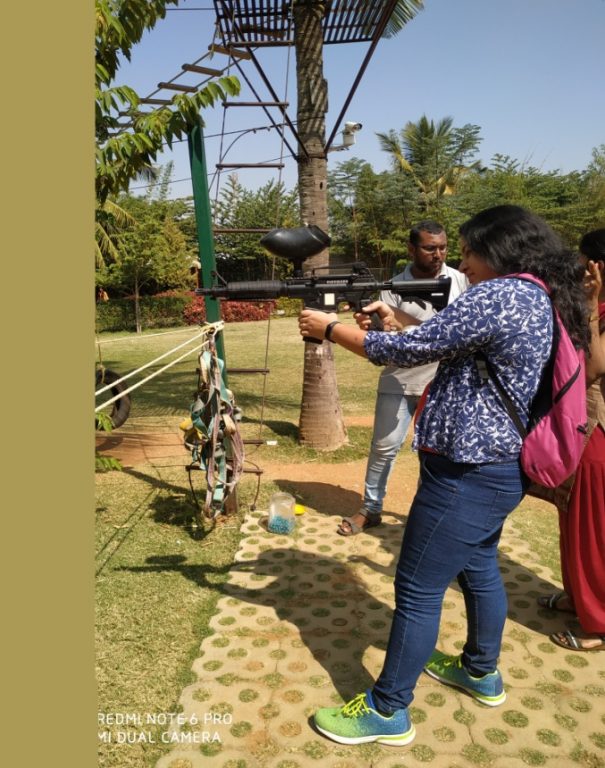The day started off with all the enthusiastic employees assembling at the office and looking forward to the day ahead. We headed to Park Resort at Banerghetta road. On our arrival at the resort, we were greeted warmly with a refreshing drink by a hospitable member of the resort. We could already see some picking up the badminton rackets or a volleyball and playing teams were already being formed. Photosessions commenced and everyone was seen taking advantage of the picturesque green landscapes. There were a variety of activities to try out like water zorbing, high rope activities, ziplining, archery, rifle shooting and some indoor games as well. There was an epic tug-of-war with the teams giving it their best possible strength.