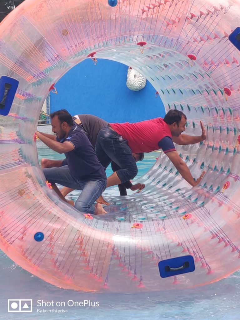Amongst the outdoor activities, water zorbing and high rope activities were particularly fun, refreshing and challenging as well. Groups of 3 each went zorbing at a time and this tested the co-ordination amongst the group. There were a lot of falls, giggles and laughter.